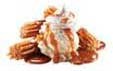 Warm crispy Churros rolled in Cinnamon and Sugar, topped with French Vanilla Ice Cream, Caramel and Whipped Topping
